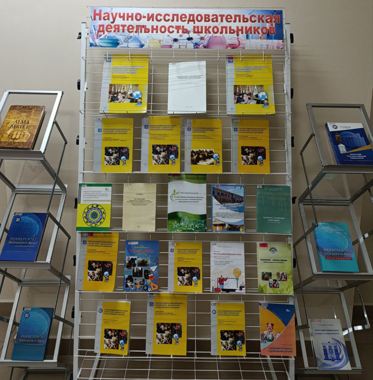 Научная библиотека для участников представила программу мероприятий: книжная выставка «Научно-исследовательская деятельность школьников» в фойе зала Учёного совета и обзорная экскурсия по читальным залам библиотеки с демонстрацией библиотечной техники.